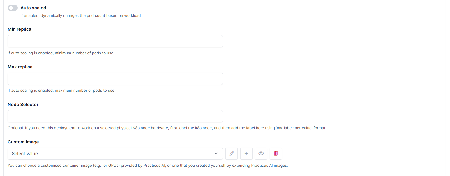 - Max Replica: Maximum number of pods when auto-scaling is enabled.